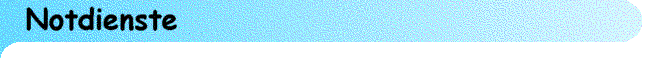 | Zahnärztlicher Notdienst, Mo.- Fr. 19:00 - 23:00 Uhr, Sa. und So. 10:00 - 12:00 Uhr und 17:00 - 19:00 Uhr |