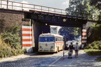 Wenige Monate nach dieser Aufnahme begannen daher auch die aufwendigen Umbauarbeiten an der Unterführung, um diese zweispurig mit Fußgängerweg herzurichten (Burgdamm, 1965). (Foto: Archiv HVL)