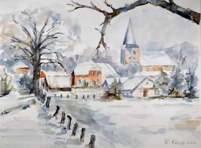 Lesumer Kirche im Schnee (Rosi Finck, Aquarell, 2000)