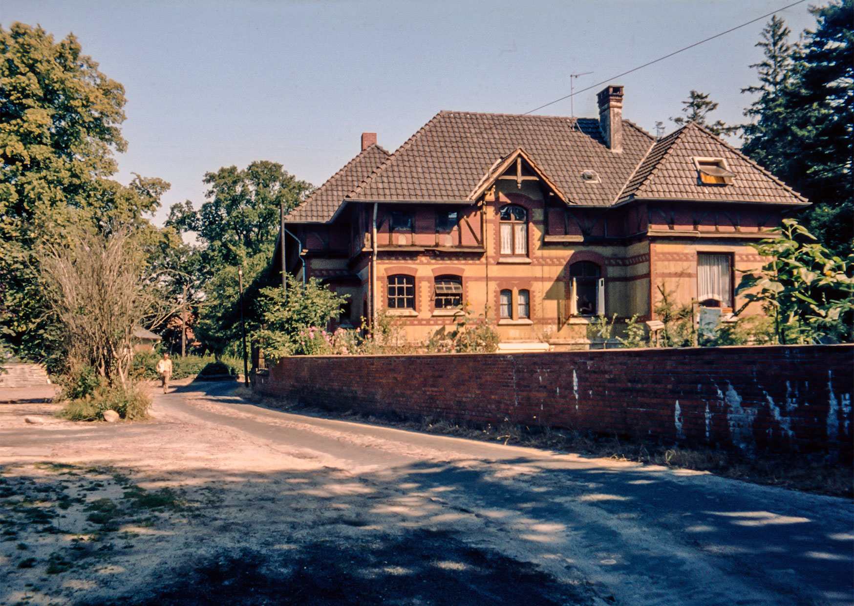 Blick aus der Straße „Am Kapellenberg“ zur Straße „Auf dem Hohen Ufer“ mit Friedenseiche von 1871. Das Hofmeierhaus Schotteck im Schweizerhaus-Stil entstand 1891 an der Auffahrt zum Hauptgebäude im vorderen Teil des zugehörigen Parks und gehörte zum Anwesen von Adele Wolde geb. Knoop. Baumeister war Christian Bummerstedt. Ein Hofmeierhaus war damals, im Gegensatz zu den Villen, das ganze Jahr über bewohnt, damit der Verwalter stets nach dem Rechten sehen konnte, wenn die Herrschaften an einem anderen Ort weilten. Das Haus steht seit 2009 unter Denkmalschutz. Es wurde inzwischen in Eigentumswohnungen aufgeteilt. Von außen ist es noch fast im Originalzustand erhalten. „Schotteck“ ist abgeleitet vom Spitznamen von Georg „Schotte“ Wolde, der als sehr geizig galt. Er war Teilhaber der Geldwechselfirma Schulze und Wolde, die 1929 in der Deutschen Bank aufging.