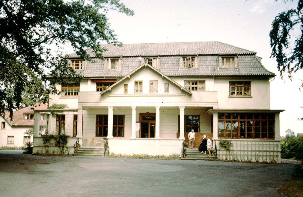 September 2024: Adelenstift; Am Heidbergstift 38 (Lesum); Foto: 1976 Der Erstbesitzer des Adelenstifts war Johann Anton Schrage (1759-1810). Das Haus wurde ca. 1910 an Johannes Schröder übergeben, den Bruder des Architekten Rudolf Alexander Schröder. Diesem verdankt das Adelenstift seine heutige Gestalt. 1927 wurde die Villa von Hans Lahusen als Stiftung „Heidberg“ ein Heim für Erholungssuchende. Nach dem Zusammenbruch des Lahusen-Konzerns übernahm es 1932 das Bremer Diakonissenhaus. 1940 erfolgte die Umbenennung des Hauses in „Adelenstift-Heidberg“, nach der Ehefrau Adele des früheren Besitzers Johannes Schröder. Seit 1988 wird das Haus von der Inneren Mission als Wohnheim für Nichtsesshafte betrieben. In der dazu gehörigen Parkanlage befindet sich ein Erinnerungsstein an Johann Anton Schrage und seine beiden Ehefrauen. (Archiv HVL FLesum00816)