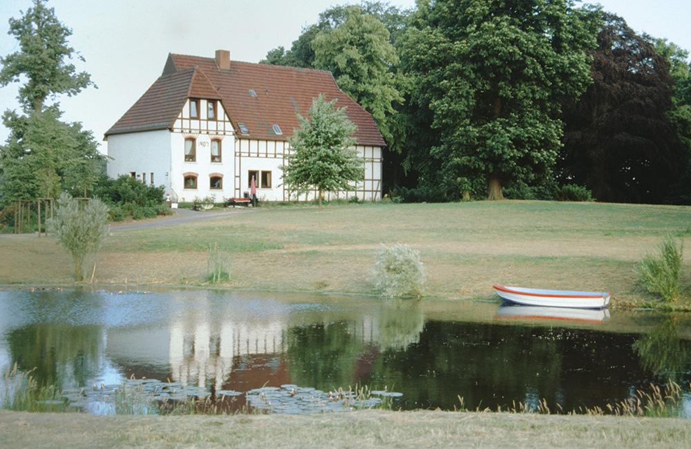 April 2025: Gut Kleine Dunge; Lesumbroker Landstr. 70 (Werderland); Foto: Wilfried Hoins, Juni 1991 Bereits im Jahr 823 wurde ein Gut „Villa Dung“ und 1337 auch urkundlich als „Lutcke Dung“ im ehemaligen Bett der Weser erwähnt. 1773 wurde hier der Gründer von Bremerhaven, Johann Smidt, geboren. Seine Familie und deren Vorfahren waren 237 Jahre auf dem Gut ansässig. Das heutige schöne Fachwerkhaus wurde vom Enkel Heinrich Smidt 1907 errichtet und diente danach als Kutscherhaus mit Pferdestall. Ab 1930 war die Schröder-Bank (bzw. die Norddeutsche Kreditbank) der Eigentümer. 1954 erhielt Baron von Uslar-Gleichen die Kleine Dunge und spezialisierte sich auf Milchwirtschaft und den Handel mit Hühnereiern (bis 1962). Es erfolgte der Ausbau des Hauses zu einer Doppelwohnung mit kleiner Gaststätte. Nachdem die städtischen Projekte „Werderlandstraße“ und „Friedhof“ nicht verwirklicht wurden, entstand im August 2010 ein Golfplatz mit Restauration „Golf-Club Lesmona e.V“. (Archiv HVL F04139)