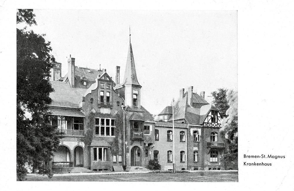 Januar 2026: Haus Schotteck - Krankenhaus, Am Kapellenberg 3 (St. Magnus); Ansichtskarte nach 1948/49