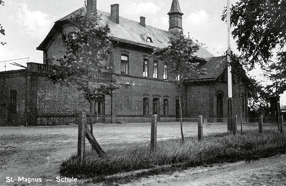 Februar 2026: Schule St. Magnus, Richthofenstr. 37-39 (St. Magnus); Aufnahmedatum unbekannt Die Schule wurde 1886 mit zwei Klassenräumen und einer Dienstwohnung fertiggestellt. Es folgten Anbauten im Jahre 1900 und 1909. Im Jahr 1927 besuchten 112 Kinder die Schule. Bis zum heutigen Tag kamen weitere Anbauten hinzu, so dass hier heute über 200 Kinder unterrichtet werden. (Archiv HVL AK00549)