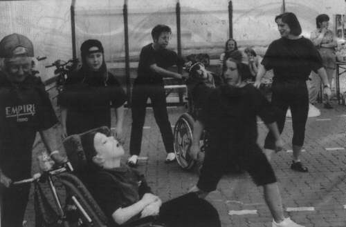 M A R ß E L (kpf). Der Verein "Miteinander unter einem Dach e.V." stellte sich jetzt auf dem Geiände des Obi-Baumarktes der Öffentlichkeit vor. Bei dem Verein handelt es sich um einen Zusammenschluß von Eltern, Pädagogen und anderen Interessierten, die sich für das Zusammenleben von Menschen mit und ohne Behinderungen einsetzen. Seit Beginn der Integration von Behinderten im KTH Burgdamm vor 12 Jahren gibt es den Verein nun schon. Bei strahlendem Sonnenschein wurde nun demonstriert, was Integration bedeuten kann. So wurden Tänze von Rolli-Fahrern gemeinsam mit Nicht-Behinderten demonstriert.