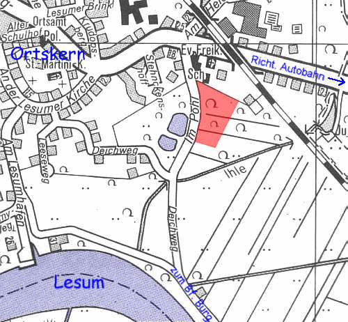 Trotz der ruhigen Lage bietet der nahegelegene Ortskern von Lesum Einkaufsmöglichkeiten (250 M), Gastronomie (100 M) und Bushaltestelle (150 M).